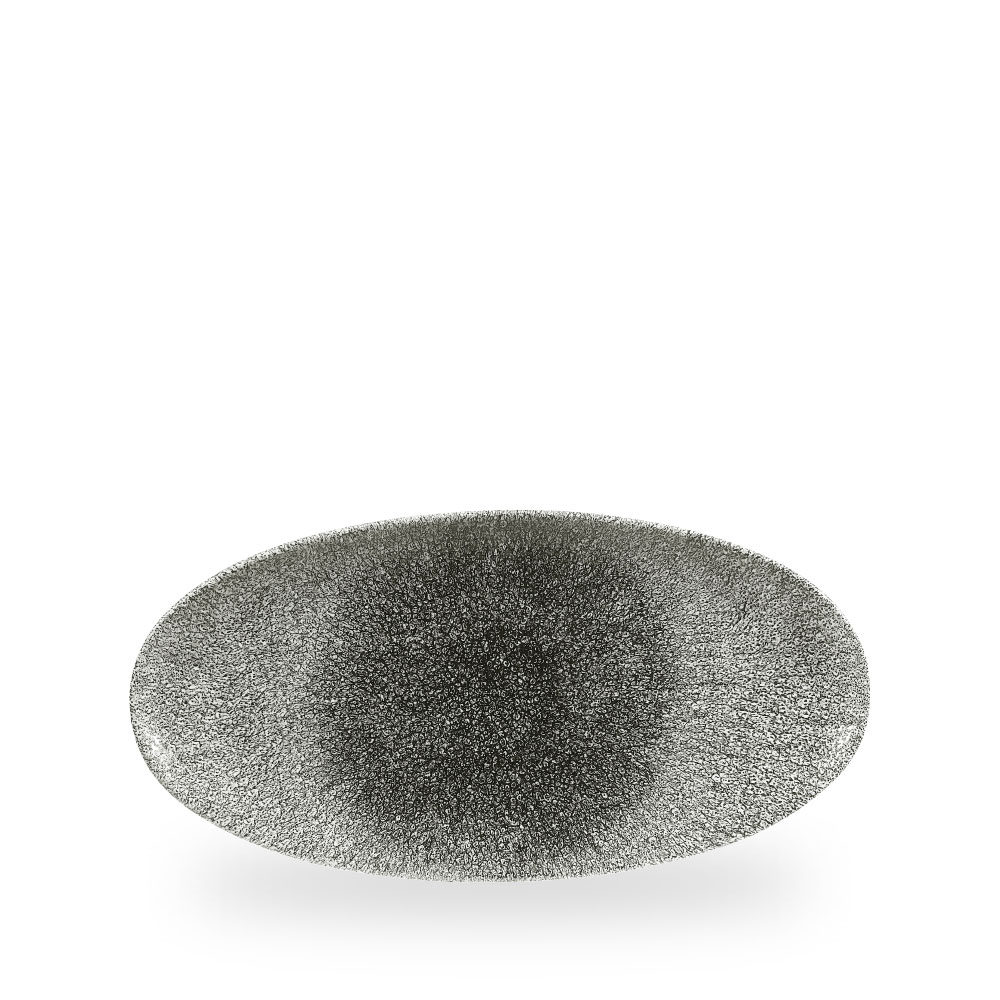 Platte oval 29,9 x 15 cm Porzellan Serie Studio Prints Raku Quartz Black Churchill - ab Euro 150,- netto liefern wir frei Haus Deutschland!