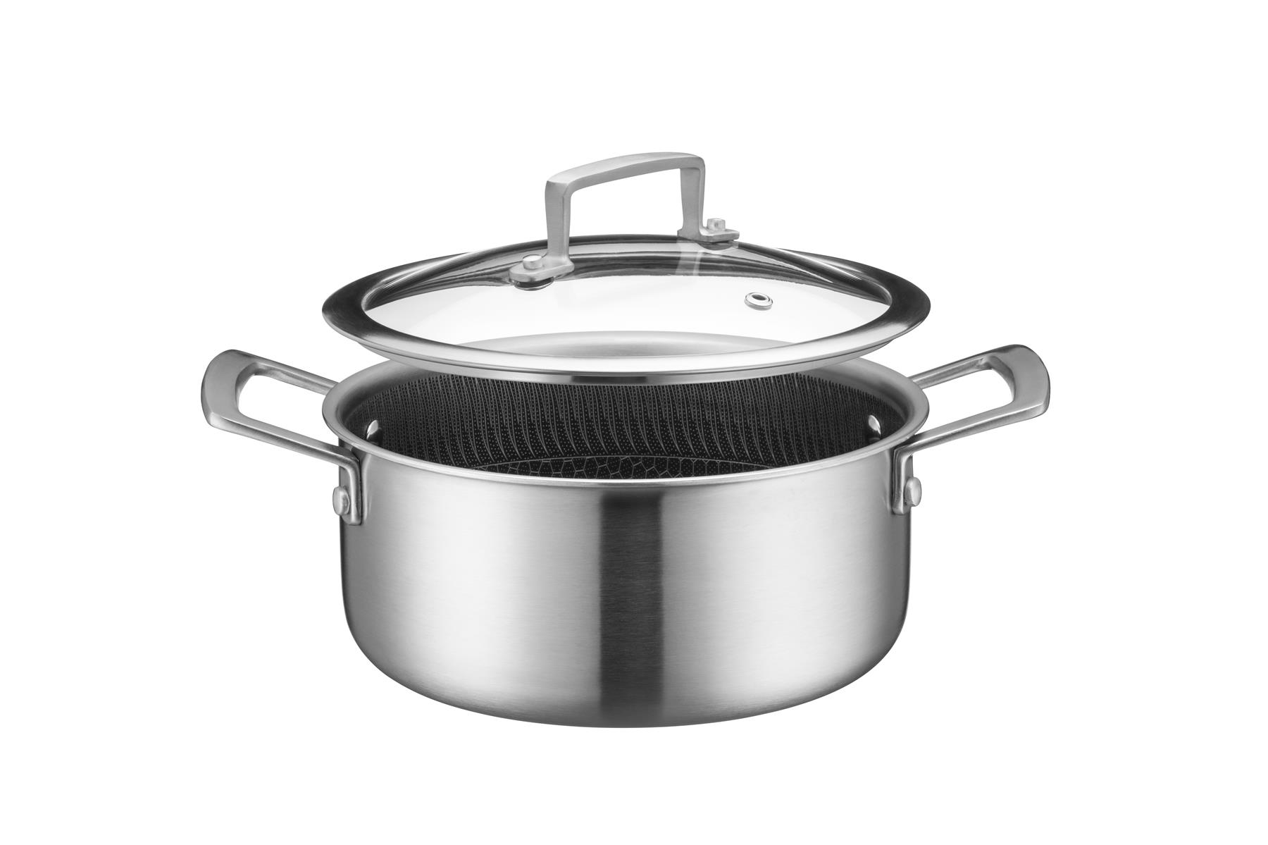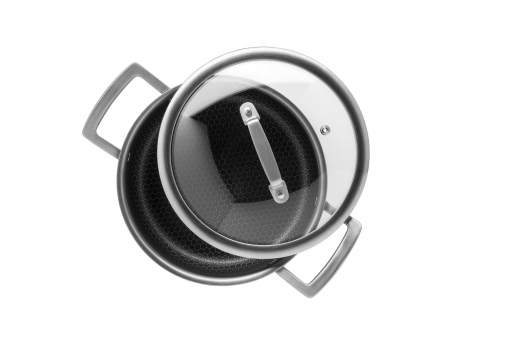 Kochtopf mit Glasdeckel keramikbeschichtet 20x9,5 cm, Edelstahl 18/10 induktionsgeeignet Hestia Keramik von Mäser - Lieferung ab Euro 150,- netto frei Haus Deutschland!